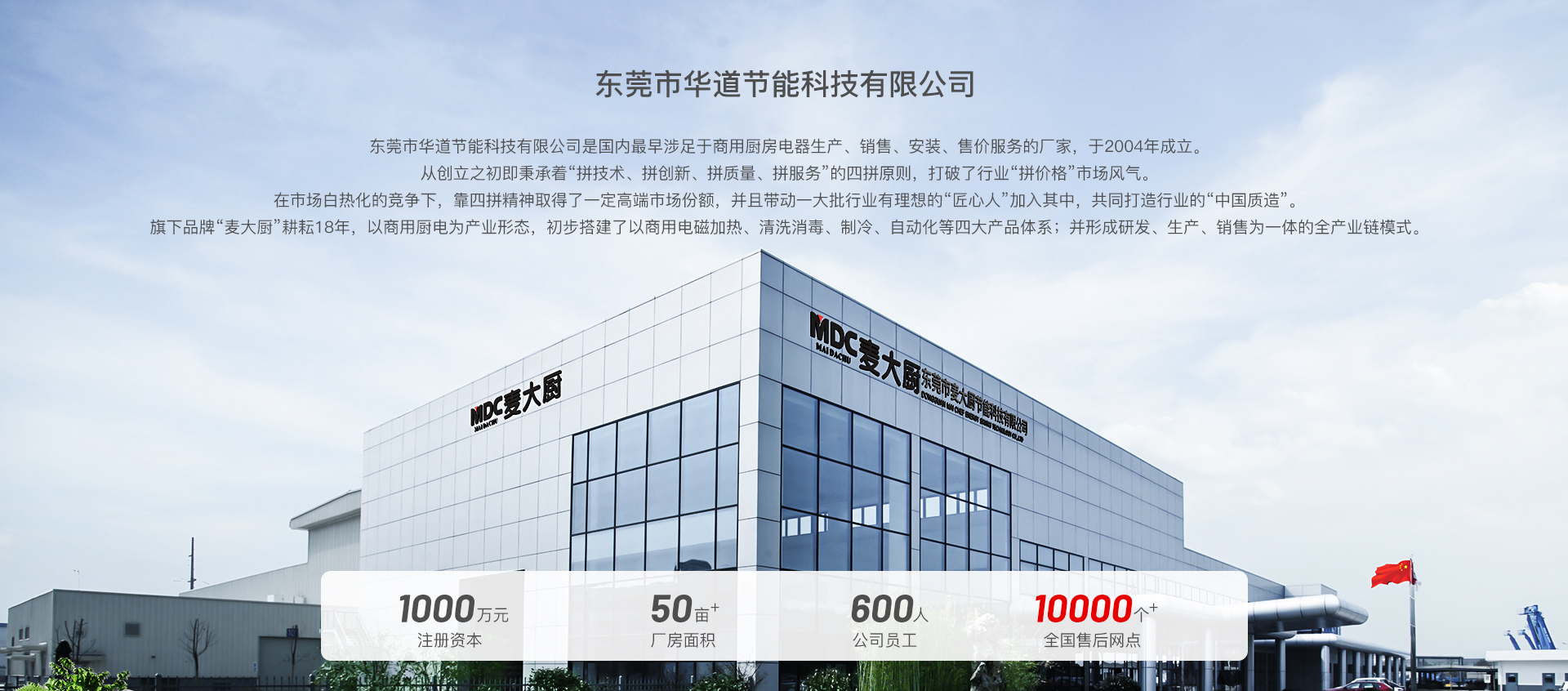 東莞市華道節(jié)能科技有限公司是國(guó)內(nèi)最早涉足于商用廚房電器生產(chǎn)、銷售、安裝、售價(jià)服務(wù)的廠家,于2004年成立。 從創(chuàng)立之初即秉承著“拼技術(shù)、拼創(chuàng)新、拼質(zhì)量、拼服務(wù)”的四拼原則,打破了行業(yè)“拼價(jià)格”市場(chǎng)風(fēng)氣,在市場(chǎng)白熱化的競(jìng)爭(zhēng)下,靠四拼精神取得了一定高端市場(chǎng)份額 并且?guī)?dòng)一大批行業(yè)有理想的“匠心人”加入其中,共同打造行業(yè)的“中國(guó)質(zhì)造”。
